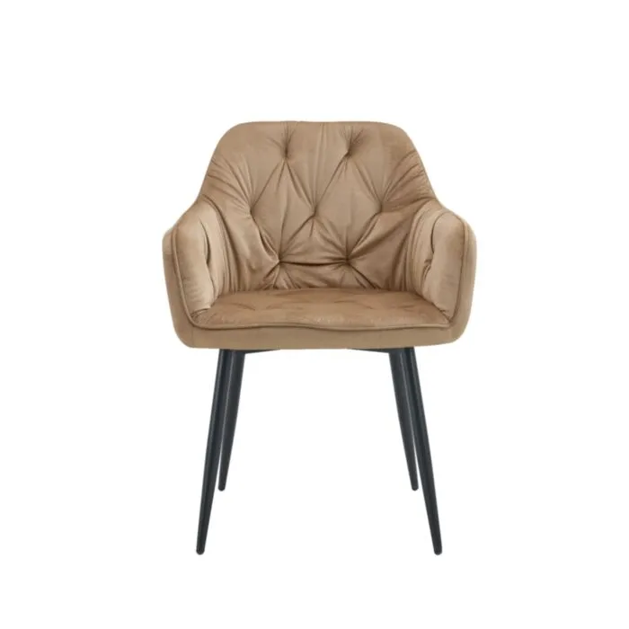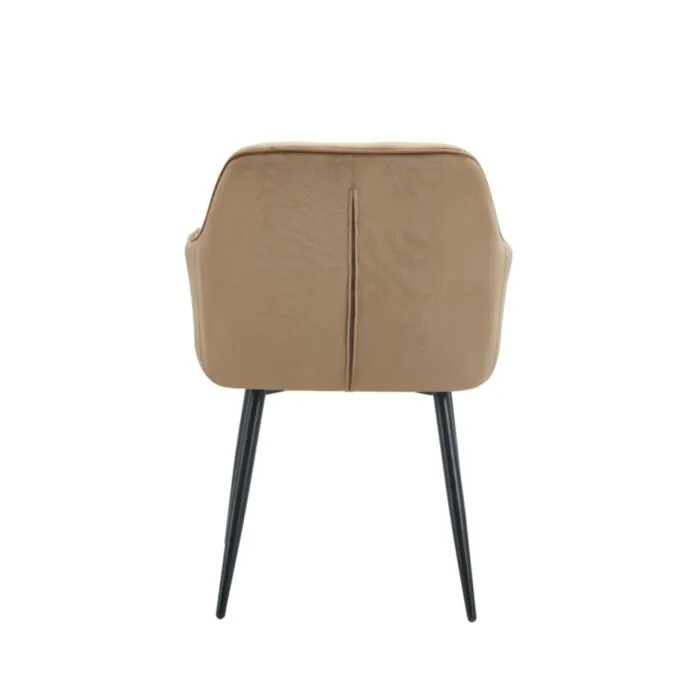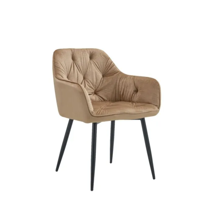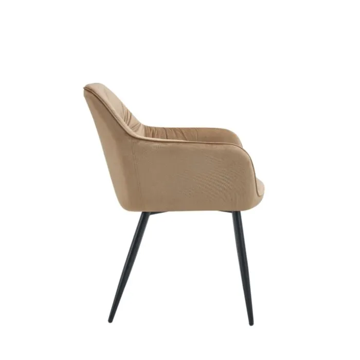 Kuhinjski stol ADO 2 velvet bež je izdelan iz visoko kakovostne tkanine velvet. Močna stabilna kovinska konstrukcija mu zagotavlja vzdržljivost ter stabilnost. Sedež in naslon sta oblazinjena z velvet tkanino, nameščena na močne črne mat kovinske noge, ki so prašno barvane z debelino profila 1,2 mm. Prav tako je naslon v notranjosti okrašen z gostimi prešiti vzorci, ki zagotavljajo moderen izgled. Dodatno udobnost mu zagotavljata naslona za roke, ki sta prav tako prešita z vzorci in ustvarita eleganten izgled.