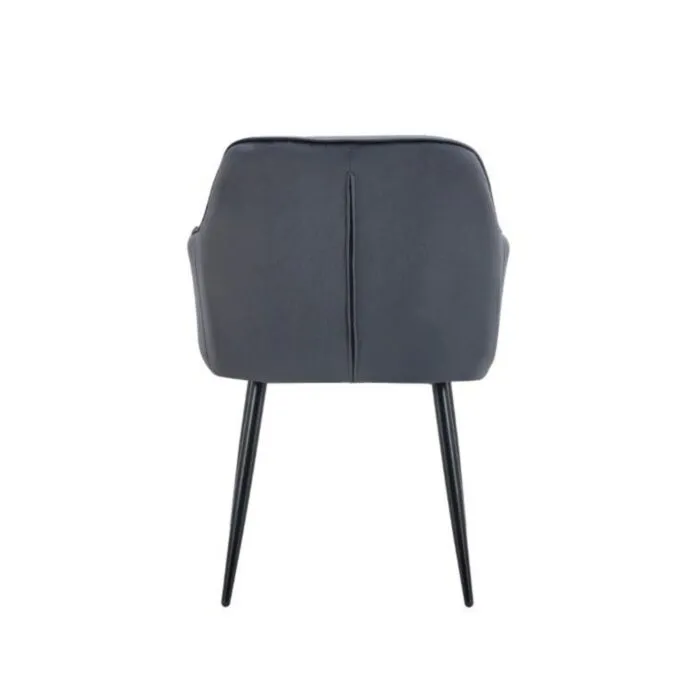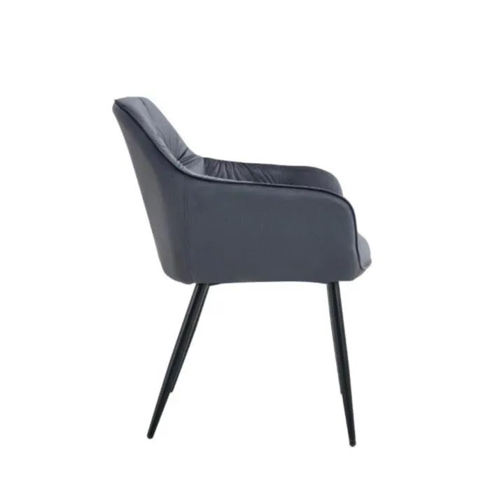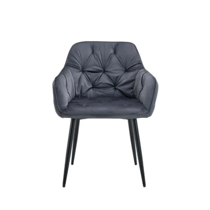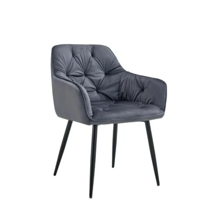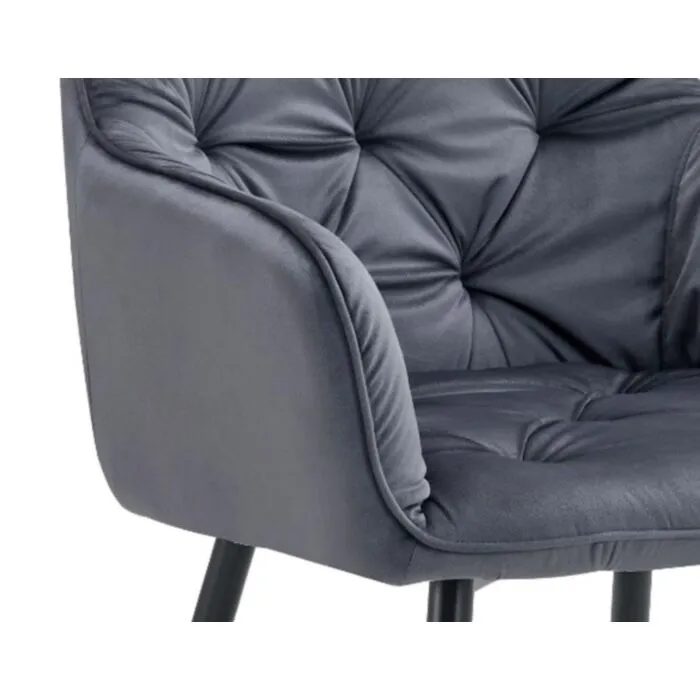 Kuhinjski stol ADO 2 velvet siva je izdelan iz visoko kakovostne tkanine velvet. Močna stabilna kovinska konstrukcija mu zagotavlja vzdržljivost ter stabilnost. Sedež in naslon sta oblazinjena z velvet tkanino, nameščena na močne črne mat kovinske noge, ki so prašno barvane z debelino profila 1,2 mm. Prav tako je naslon v notranjosti okrašen z gostimi prešiti vzorci, ki zagotavljajo moderen izgled. Dodatno udobnost mu zagotavljata naslona za roke, ki sta prav tako prešita z vzorci in ustvarita eleganten izgled.