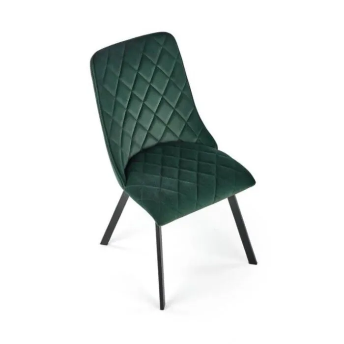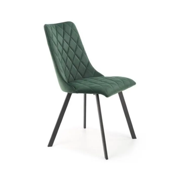 Kuhinjski stol ANA temno zelena, je eleganten, moderen in trpežen. Je izjemno udoben in mehak saj je oblazinjen v mehko žametno tkanino v črni barvi. Črne kovinske noge so elegantnega videza. Stol zagotavlja kakovst in stabilnost.
