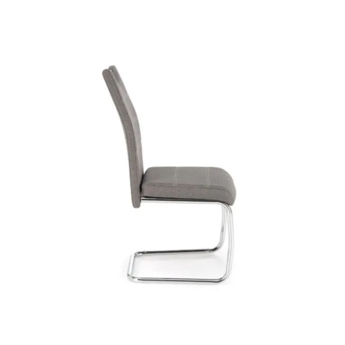 Kuhinjski stol CHIBA je kvaliteten stilski stol, ki popestri vsako jedilnico. Podnožje je izdelano iz kovine v krom barvi. Sedišče in naslon za hrbet pa sta oblazinjena v sivo tkanino. Stol je praktičen za uporabo, saj vsebuje zgoraj ročaj kateri omogoča enostavno prenašanje.