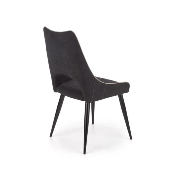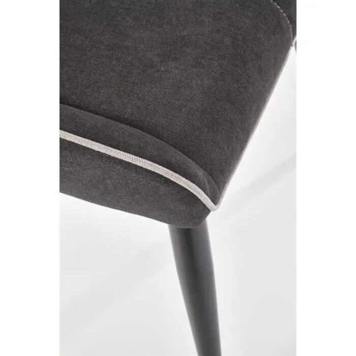 Kuhinjski stol DIZEL je moderen in kakovosten stol za vašo jedilnico. Ogrodje je narejeno iz kovine v črni barvi, oblazinjen pa je v kvalitetno tkanino v temno sivi barvi.