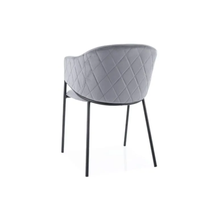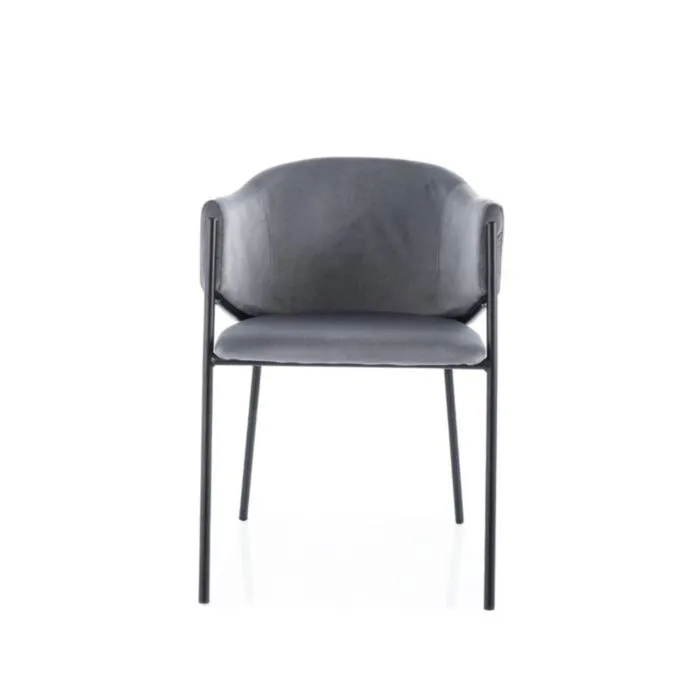 Kuhinjski stol ELTON siva, je eleganten kos pohištva. S svojim modernim dizajnom navduši. Daja prestižni videz, zaradi svoje oblike in barve. Stol je narejen iz žametnega blaga v sivi barvi, kar zagotavlja prijetno sedenje. Nogice so iz kovine v črni barvi.