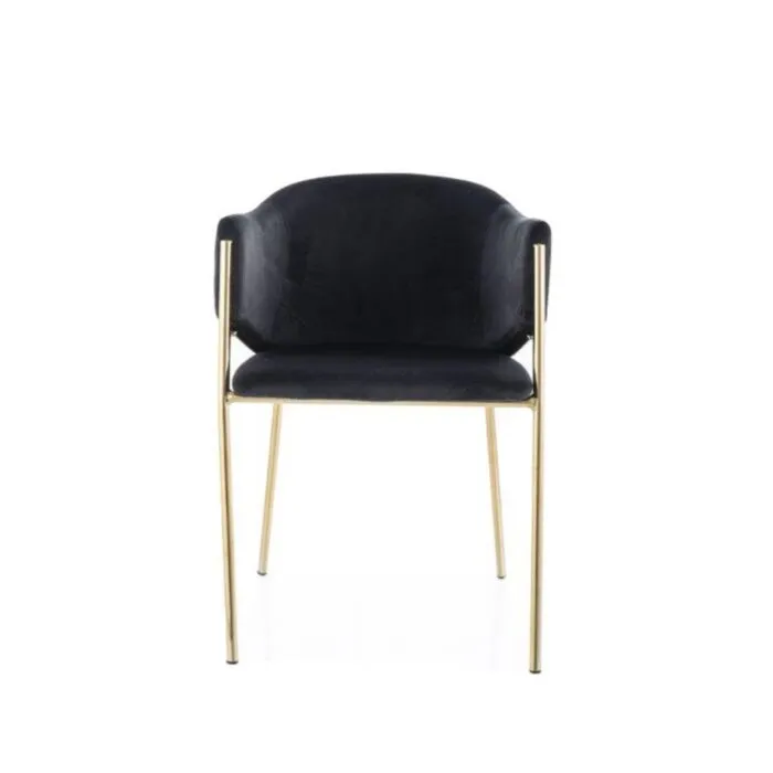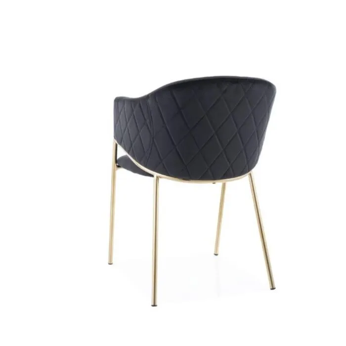 Kuhinjski stol ELTON s svojim modernim dizajnom daje prestižni videz. Sedišče je mehko in udobno saj je oblečeno v mehko žametno tkanino v črni barvi. Tanke noge so stabilne in elegantne saj so narejene iz kovine v zlati barvi.