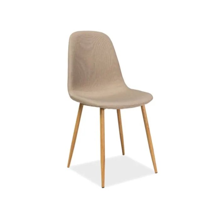 Kuhinjski stol FOXY je modernega videza. Noge so stabilne in kakovostne, narejene so iz kovine v videzu hrasta. Sedalni del je oblečen v tkanino, ki je na voljo v dveh barvah.