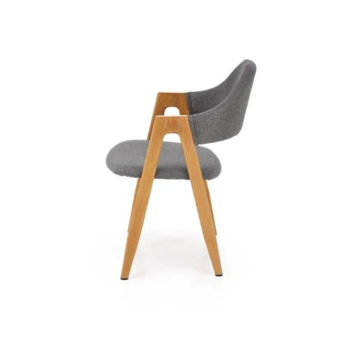 Kuhinjski stol JEROME2 je zanimiv stilski stol, ki popestri vsako jedilnico. Nogice so robustne in trdne saj so izdelane iz jekla, ki je barvano v barvo hrasta. Sedalni del ter naslon za hrbet sta oblazinjena v sivo tkanino.