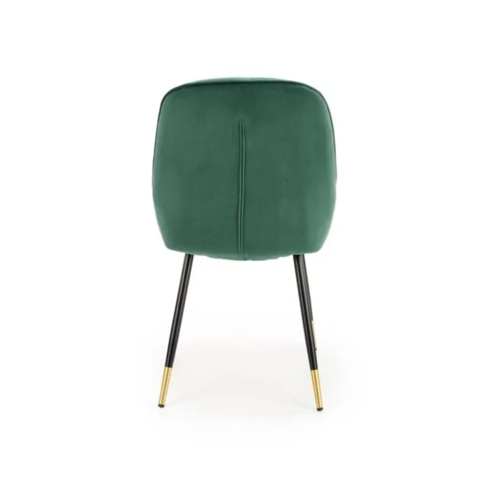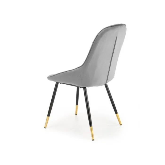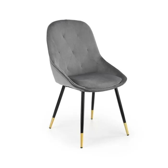 Kuhinjski stol KEKS je stol dobre kvalitete in sodobnega izgleda. Nogice so izdelane iz kovine v črni barvi, katere imajo spodnji del dodatka zlate barve. Kar daje stolu videz elegance. Stol je oblazinjen v mehko in udobno žameno tkanino, ki je na voljo v sivi ali zeleni barvi.