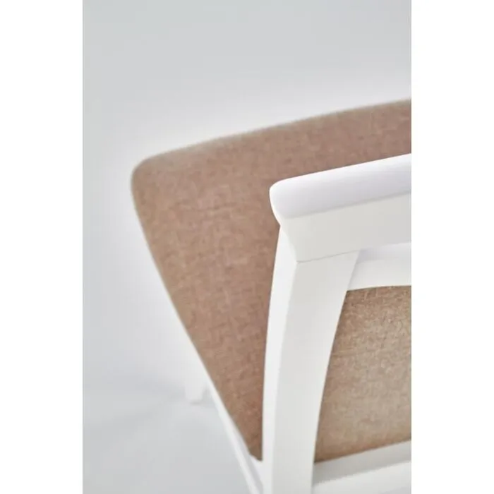 Kuhinjski stol KLASA2 je klasičnega videza. Narejen je iz masivnega bukovega lesa v beli barvi, kar mu daje vzdržljivost in kakovost. Stol je udoben saj je oblazinjen v bež tkanino.