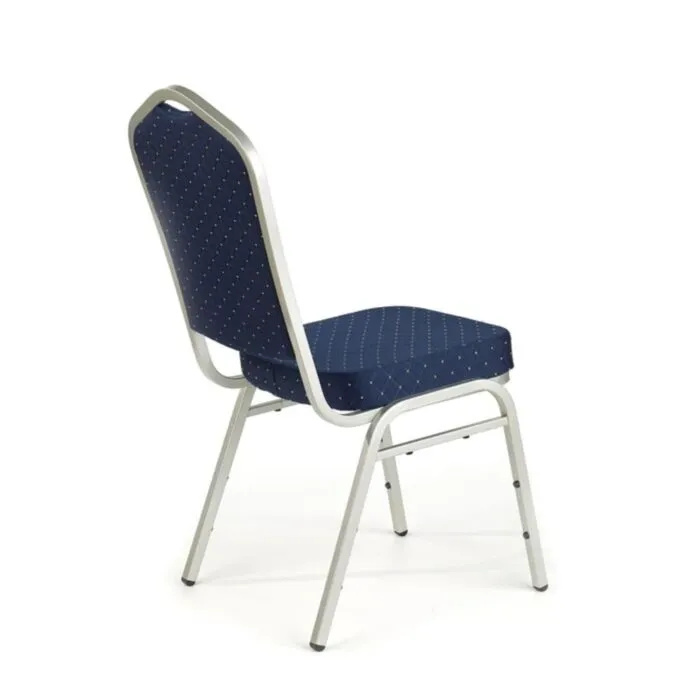 Kuhinjski stol KRALJICA združuje razkošje baročnega s praktičnostjo in minimalizmom sodobnega. Narejen je iz kovine v srebrni barvi ter oblečen v kvalitetno blagao modre barve, z vzorcem. Stoli so praktični za uporabo saj so nakladalni, lahko se zložijo eden na drugega.