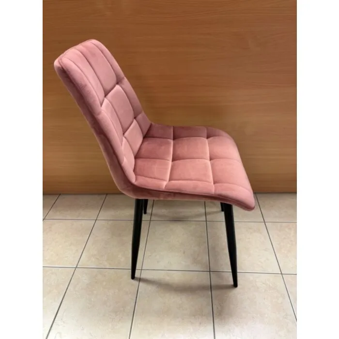 Moderen stol LARA roza – s bo poživel vsako jedilnico. Dobiti ga je možno v več barvah velvet tkanine. Tanke noge iz kovine v črni mat barvi dodajo pridih modernosti, ter nudijo stabilnost in trpežnost. Sedišče in naslon za hrbet sta oblazinjena v velvet tkanino, katera nudi udobje.