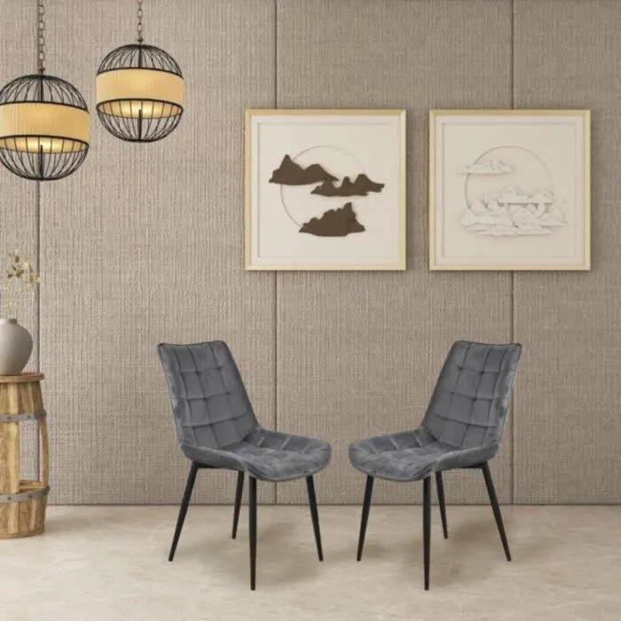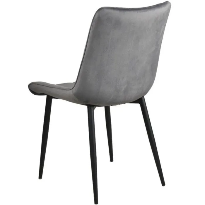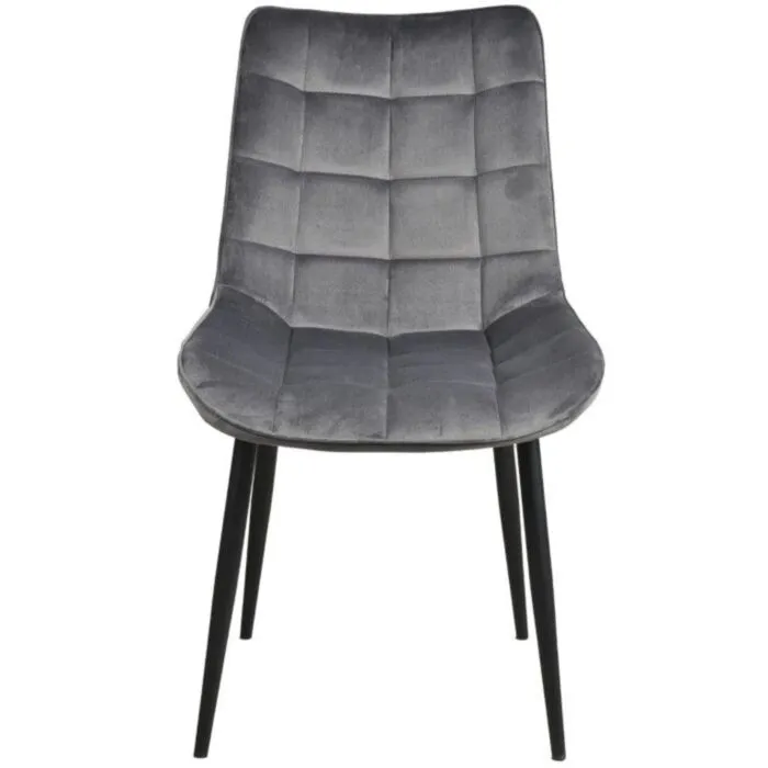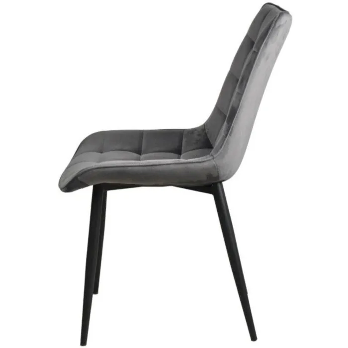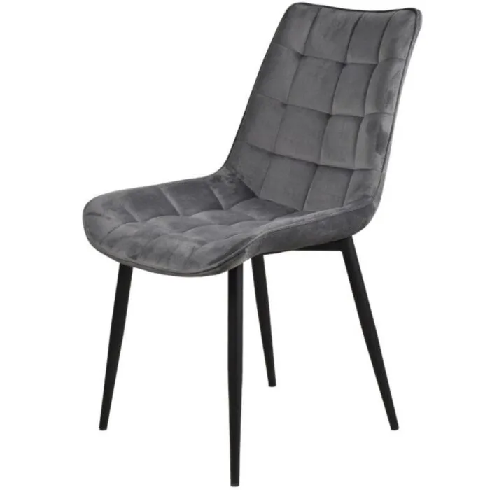 Kuhinjski stol LARA velvet siva je odlična rešitev za kombiniranje v minimalističen ali industrijski stil prostora. Kombinacija sivega prešitega blaga s črnimi kovinskimi nogami ustvari eleganco in lahkotnost. Noge so prašno barvane s debelino profila 1,2 mm. Profiliran naslon omogoča optimalen položaj sedenja ter udobje. Prešiti vzorec pa okrepi tkanino oblazinjenja in ustvari dodatno eleganco.