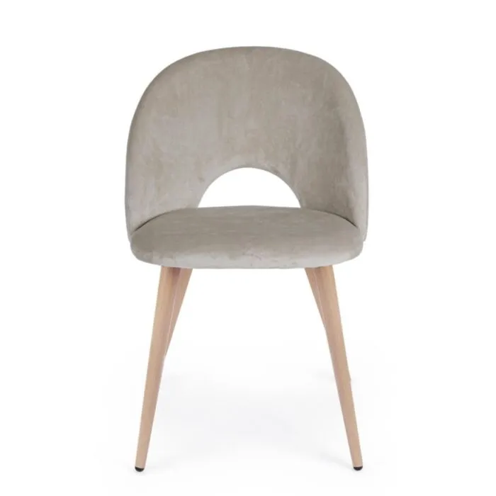 Kuhinjski stol LINZEY taupe ima jeklene noge v videzu naravnega lesa, kar mu daje naravni videz. Sedež in naslon za hrbet sta polnjena z poliuretansko peno, za dodatno udobje. Prevleka stola je iz žametne tkanine, katera daje stolu elegantni videz.
