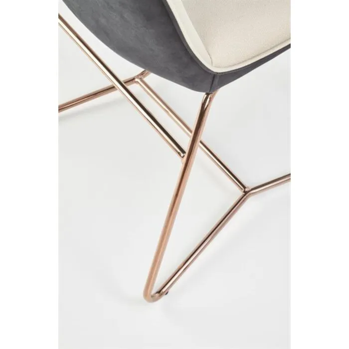 Kuhinjski stol MELITA je eleganten in stabilen. Oblazinjen je v krem umetno usnje kar nudi udobje. Hrbtišče pa je iz tkanine. Noge so iz kovine v roza zlati barvi, kar daje stolu stabilnost in eleganten videz.