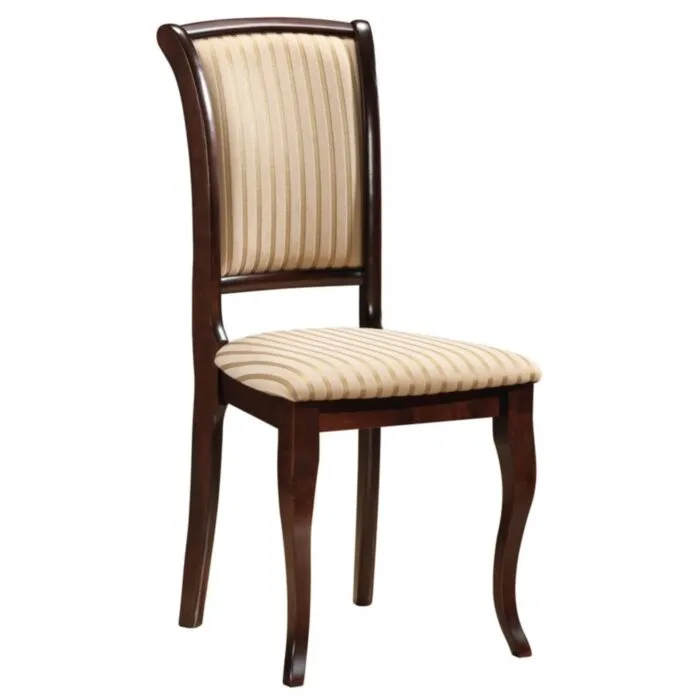Rustikalen kuhinjski stol MILAN 2 je primeren za jedilnice. Stol je zelo kvaliteten in stabilen saj je narejen iz masivnega lesa v oreh barvi. Za dodatno udobje je sedišče oblazinjeno v bež blago. Stolu daje prefinjen videz nežen vzorec na balgu.