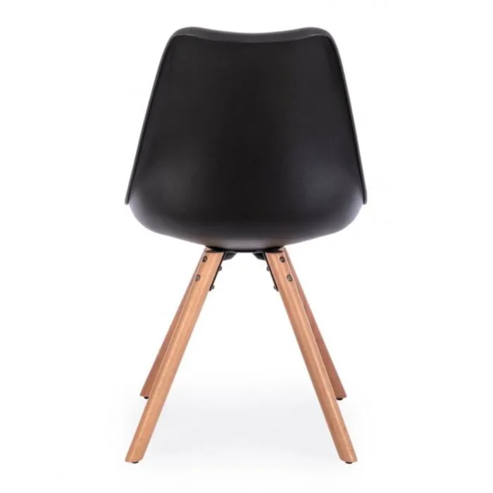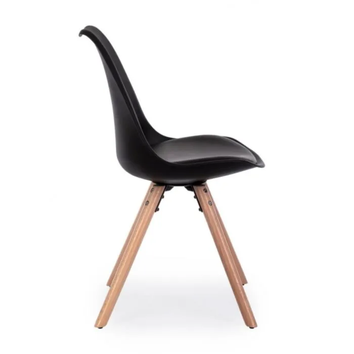 Kuhinjski stol NEW TREND črn ima noge iz bukovega lesa, sedalni del ter naslon pa sta iz plastike. Sedalni del je oblazinjen z umetnim usnjem. v črni barvi.