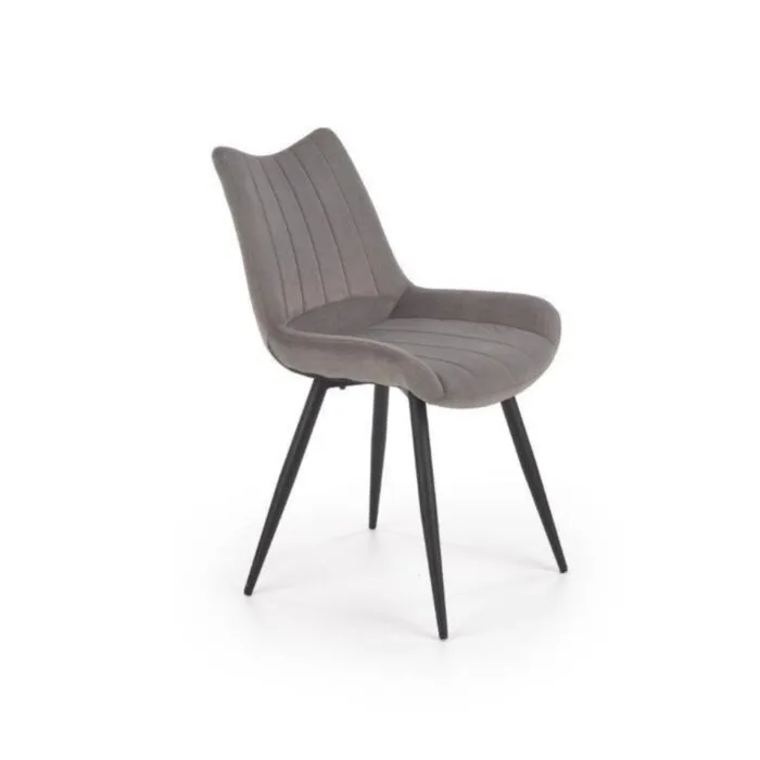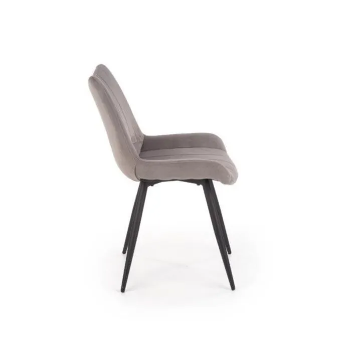 Kuhinjski stol RAMON bo poživel vsako jedilnico. Stol je kakovosten in stabilen saj so noge narejene iz kovine črne barve. Oblazinjen je v mehko žametno tkanino sive barve, kar stolu nudi udobje.