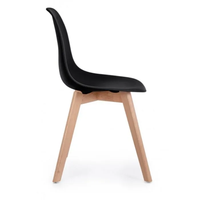 Kuhinjski stol SYST je eleganten kos pohištva, ki bo prinesel svežino v vsak prostor. Sedišče je izdelano iz kakovostnega polipropilena v črni barvi, kar zagotavlja enostavno vzdrževanje. Noge so iz bukobega lesa, kar daje stolu naraven videz.