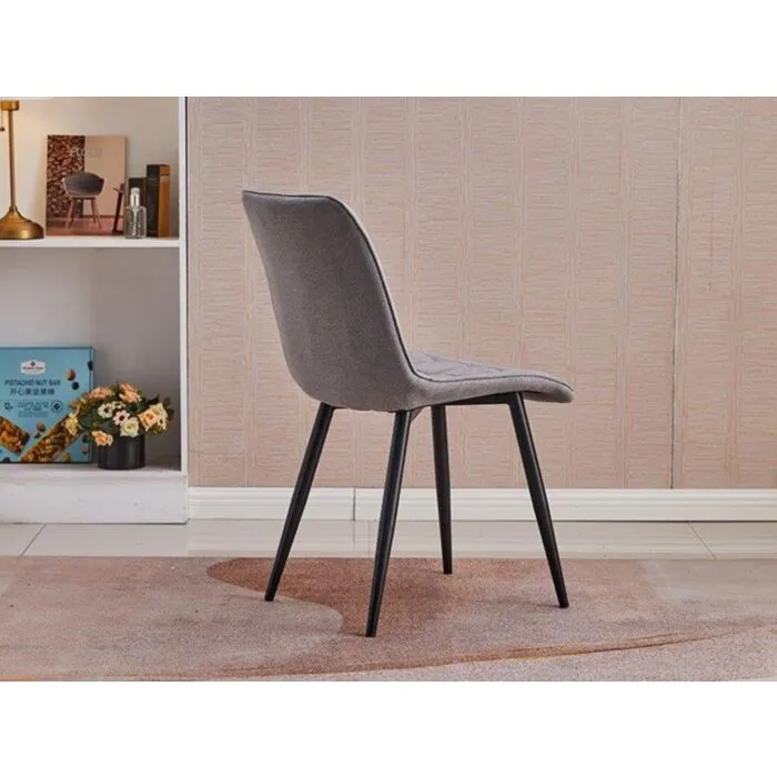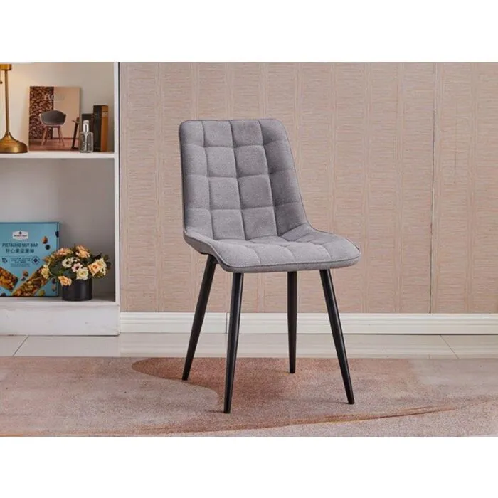 Kuhinjski stol TARIK siva tkanina je odlična rešitev za kombiniranje v minimalističen ali industrijski stil prostora. Kombinacija sivega prešitega blaga s črnimi kovinskimi nogami ustvari eleganco in lahkotnost. Noge so prašno barvane z debelino profila 1,2 mm. Profiliran naslon omogoča optimalen položaj sedenja ter udobje. Prešiti vzorec pa okrepi tkanino oblazinjenja in ustvari dodatno eleganco.