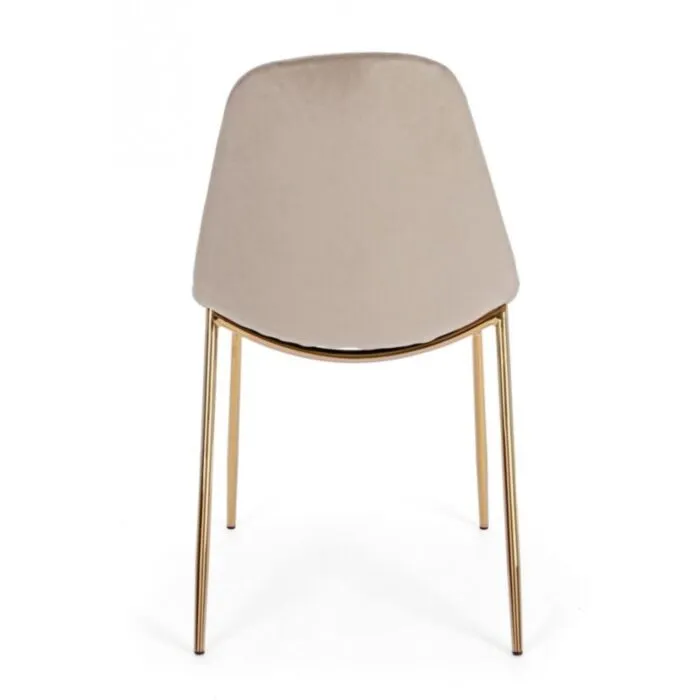 Kuhinjski stol TERRY taupe je sestavljen iz kovinskih cevastih nog zlate barve. Naslonjalo in sedež sta obložena s poliuretansko peno in oblečena v žametno tkanino taupe barve.