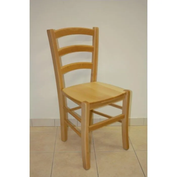 Kuhinjski stol VENEZIA je izdelan iz kakovostnega bukovega masivnega lesa, ki zagotavlja stabilnost in trpežnost. Na voljo je v bukev barvi lesa.