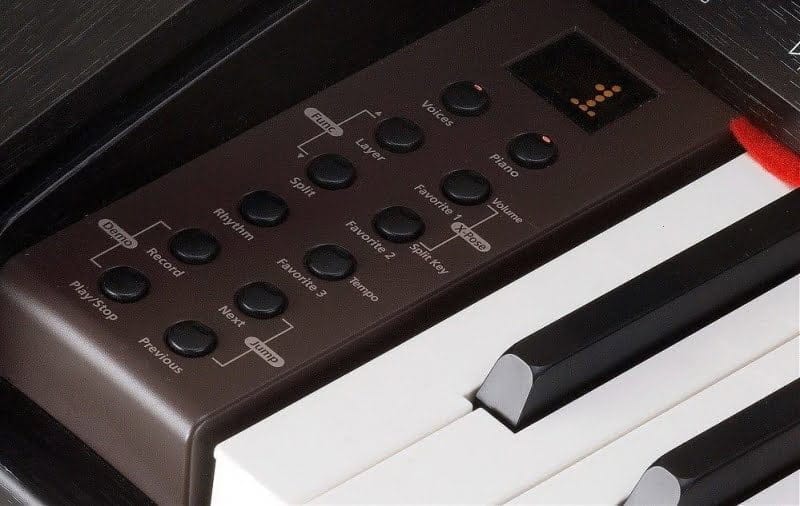 Električni klavir MP10F klavir odlikuje tudi lepa in elegantna oblika v barvi ohišja Satin Rosewood.