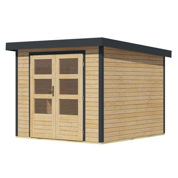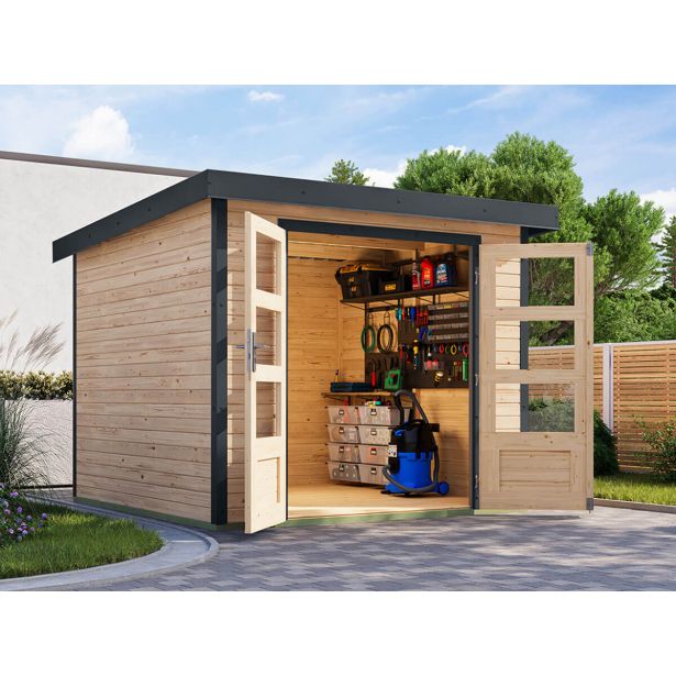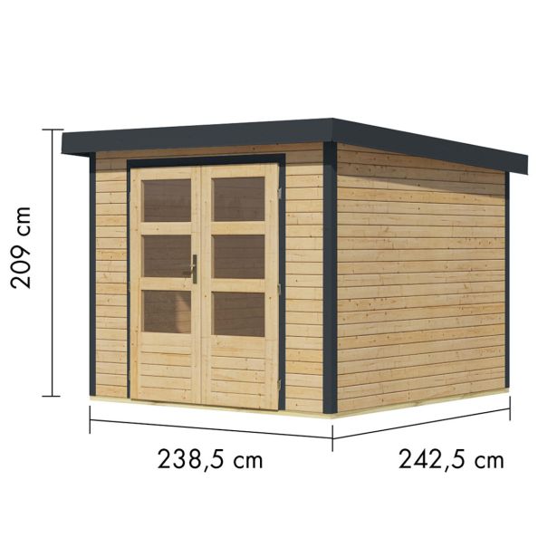 Vrtna hišica Karibu Hybrid Jupiter 3,5 A – 19 mm elementna hišica – lopa za orodje – pritlikava streha – naravna/antracitna