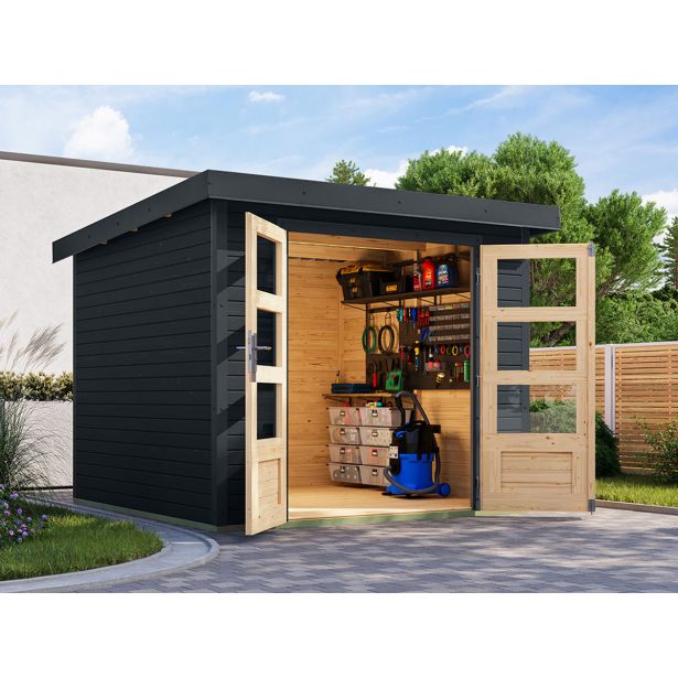 Vrtna hišica Karibu Hybrid Jupiter 3.5 C – 19 mm elementna hišica – lopa za orodje – pritlikava streha – antracit/antracit