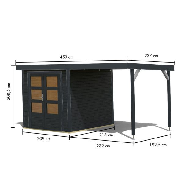LESENA VRTNA HIŠKA KARIBU JUPITER C+ PODALJŠEK STREHE 2.35M, ANTRACIT