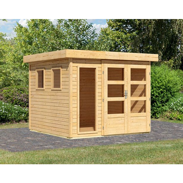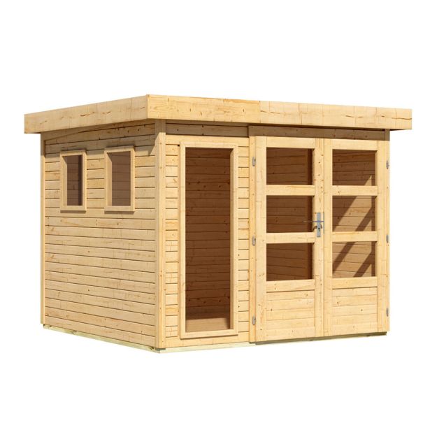 Lesena vrtna hišica Karibu Lahar 3,5 – 19 mm montažna hiša – lopa za orodje – ravna streha – naravna