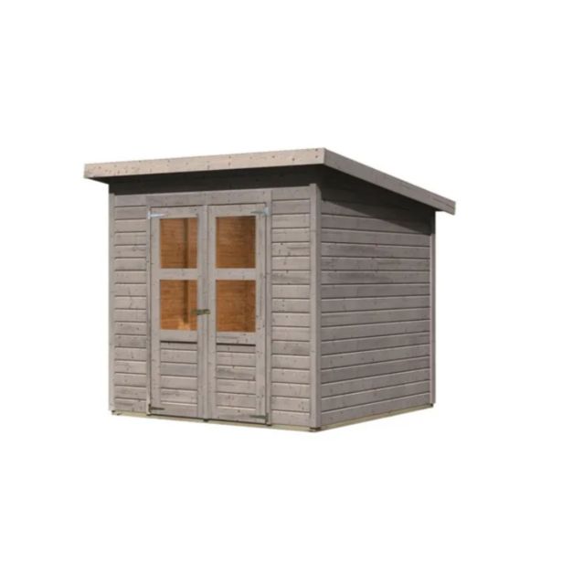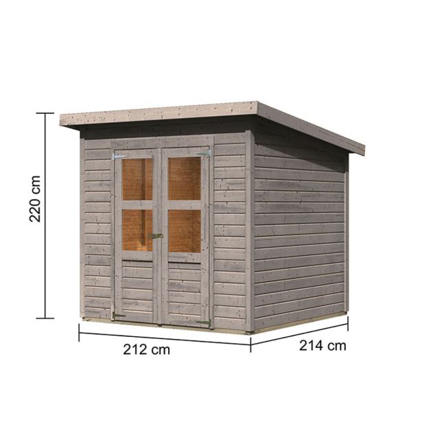 Model Merseburg 4 je na voljo v atraktivni, predhodno sivi različici, ki posnema naravno prefinjenost srebrno sive patine. Stene vrtne hiše Merseburg 4 so izdelane iz 14 mm robustne nordijske smreke . Dvojna vrata imajo udobno širino in velikodušen izrez za svetlobo zagotavlja dobro svetlobo v notranjosti. Za zaščito vaše lastnine so vrata opremljena z varnostnim zapahom.