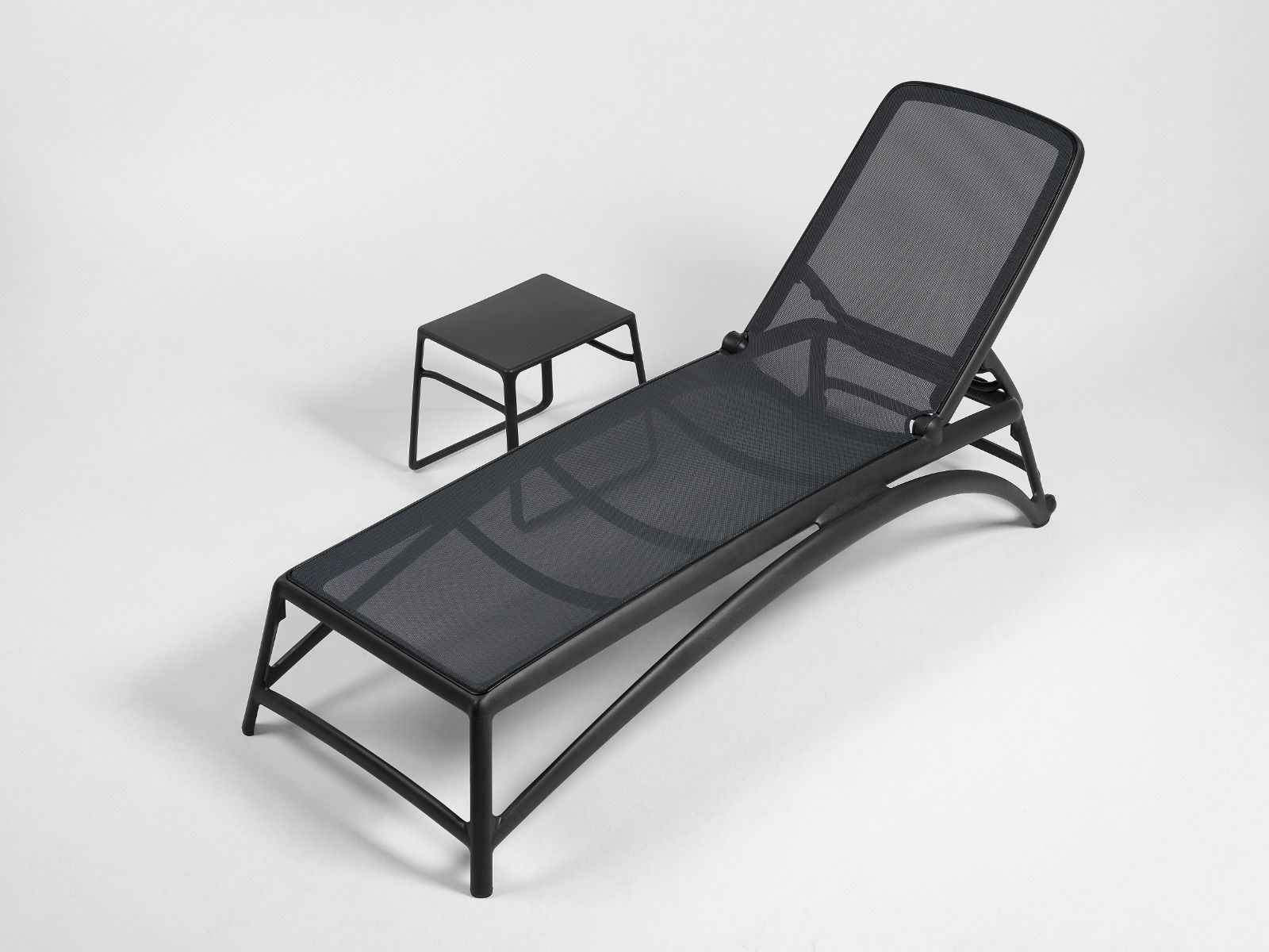 Vrtni ležalnik Atlantico italijanskega proizvajalca NARDI za sprostitev ob domačem bazenu. Drzna kombinacija antracit in turkizne barve.