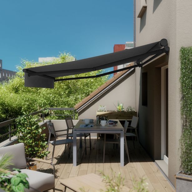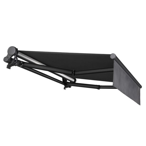 Uživajte v dolgih poletnih dneh in se zaščitite pred soncem z antracitno sivo tendo Calima proizvajalca Naterial. S svojimi dimenzijami 3,95 x 3 m nudi optimalen senčen prostor, pod katerega lahko postavite celoten komplet vrtnega pohištva ali veliko mizo in stole za uživanje v obroku na prostem z družino ali prijatelji. Njegova siva tkanina je izdelana iz poliestra, materiala, ki je odporen na trganje in je enostaven za vzdrževanje. Enostaven za uporabo, ta tenda se odpre z ročico na levi strani (ni zamenljiva).