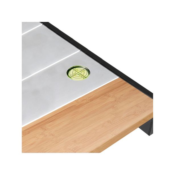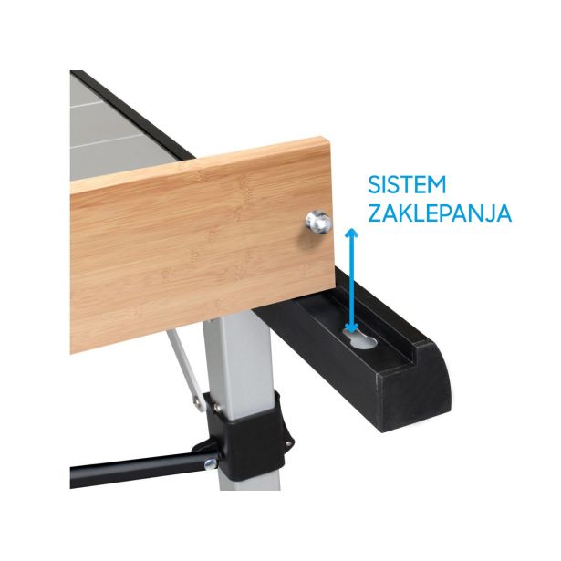 Elegantna različica Titana Quadra NG prinaša dodatne prednosti. Aluminijasta valjčna plošča s končnimi trakovi iz pravega bambusovega lesa ne le ohranja vrhunsko vzdržljivost, ampak tudi dodaja estetsko vrednost. Vgrajeni nivo špirit, skupaj z 90° Adjustar izravnalnim sistemom, zagotavlja popolno ravnotežje in stabilnost mize, ne glede na neenakomerno teren.