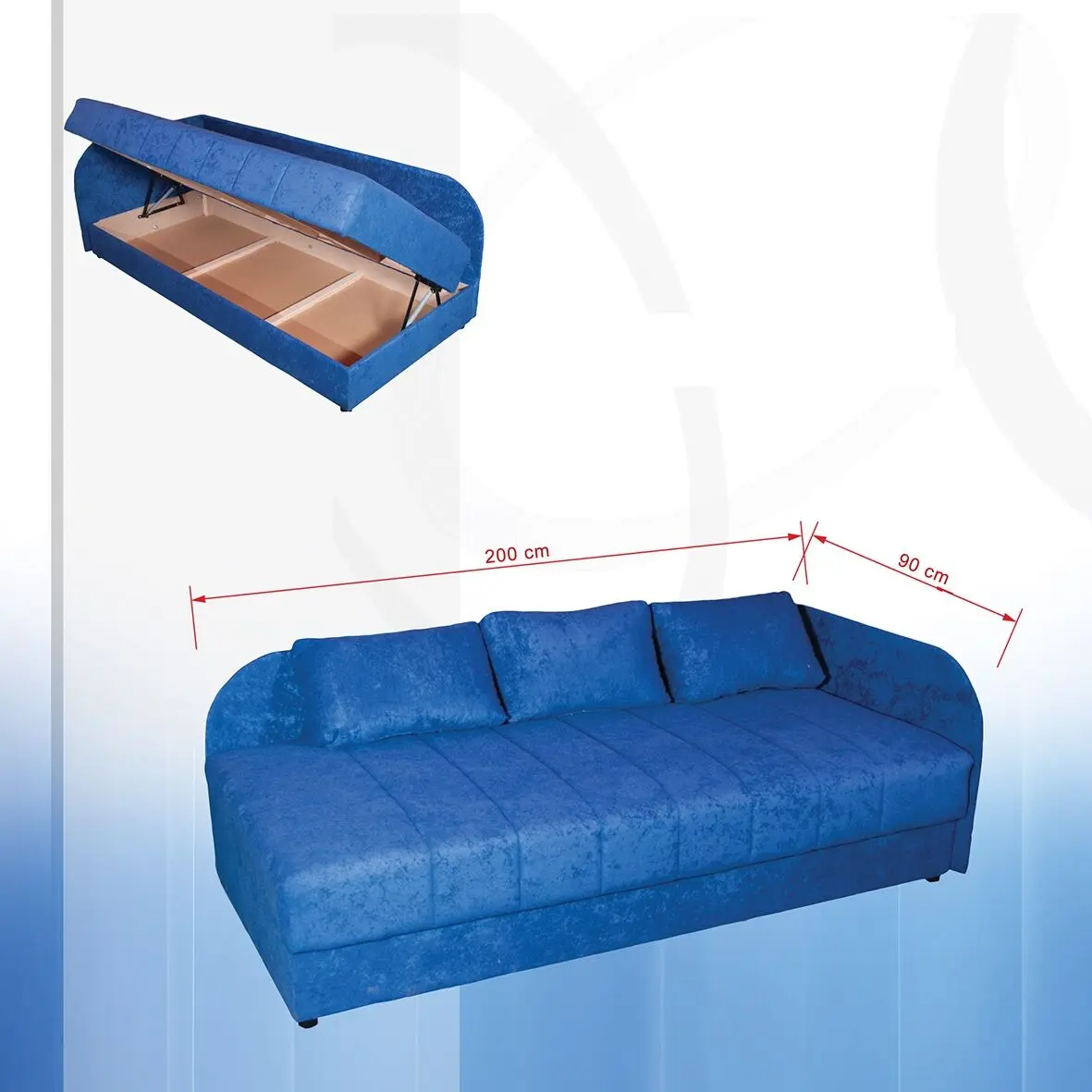 Postelja SANJA je klasična postelja primerna za otroške ali mladinske sobe ali kot dodatno ležišče v vsakem prostoru. Je dvižna, ima velik predal za shranjevanje vaših stvari. Ležišče je vzmeteno. Dobavljiva v micro tkanini barve oranžna in modra.