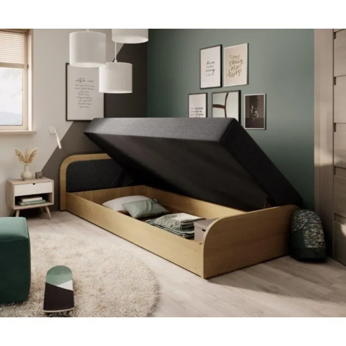 Mladinska postelja TEJA je klasična postelja primerna za otroške ali mladinske sobe ali kot dodatno ležišče v vsakem prostoru. Je dvižna, ima velik predal za shranjevanje vaših stvari. Ležišče je vzmeteno s kvalitetnimi Bonnel vzmetmi.
