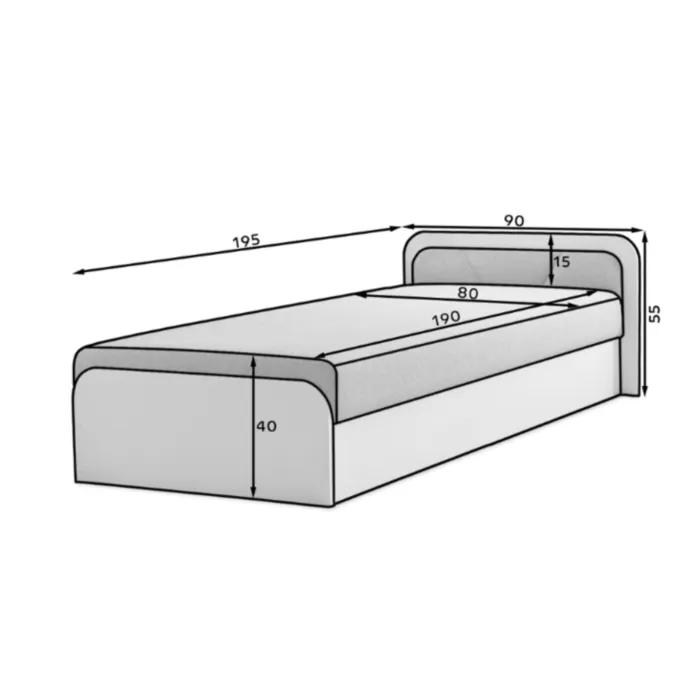 Dimenzija ležišča : D: 190 cm x Š: 80 cm
