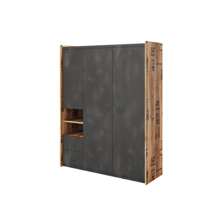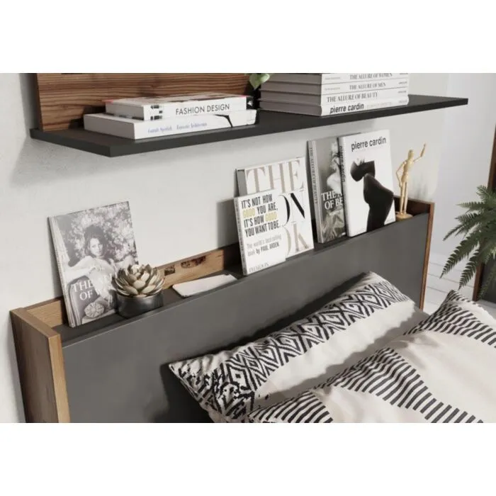 Mladinska spalnica FERGO je dobavljiva v kombinaciji ameriškega oreha / temno sive barve. NArejena je iz kvalitetne laminirane plošče in MDF plošče s ABS robovi. V ceno je vključena 1 x postelja, 1 x polica, 1 x nočna omarica, 1 x visoka garderobna omara, 1 x nizka garderobna omara, 1 x stenska polica, 1 x pisalna miza ter 1 x komoda. Primerna je za vsako spalnico saj je moderna ter prostorna.