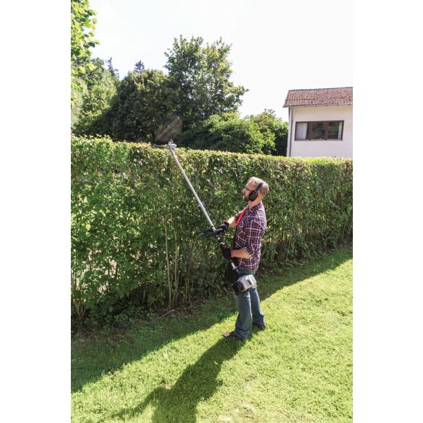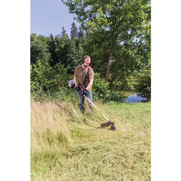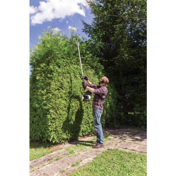 Zelo lahek, priročen in učinkovit 26-kubični bencinski multitool z dvotaktnim motorjem. Nastavek za kosilnico z nitko in nožem, visoku žagu za veje, škarje za živo mejo. Samodejni sistem s polovičnim plinom pri uporabi vzvoda dušilke. Enostavno upravljanje zaradi prijetnega, zaprtega vsestranskega ročaja z zavoro (Loop). Glava z nitko Fast&Easy, TIP-Automatik.