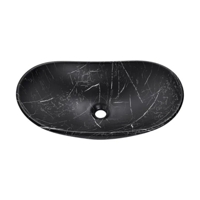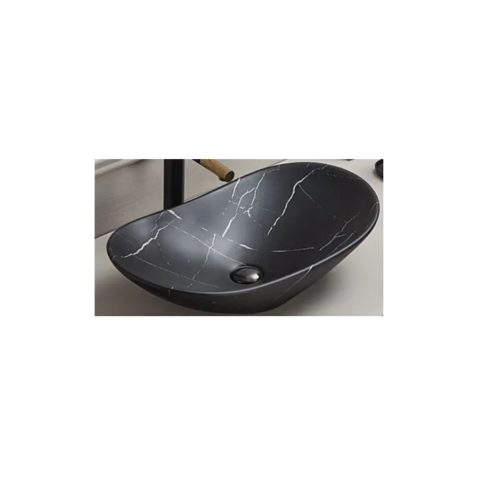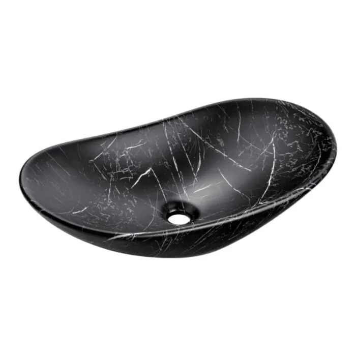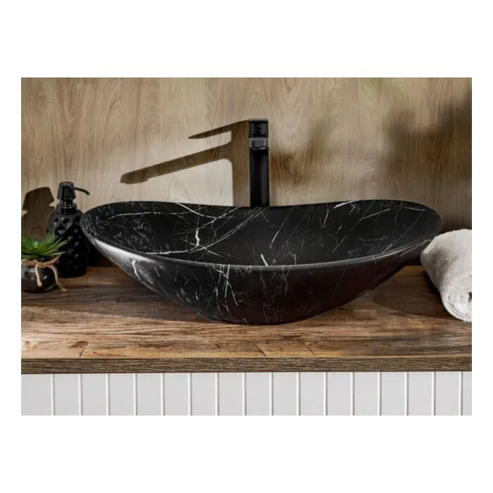 Nadpultni kopalniški umivalnik MERI je narejen iz keramike v črni mat barvi s vzorcom marmorja. Vsaki kopalnici bo dodal izgled elegance ter modernosti.