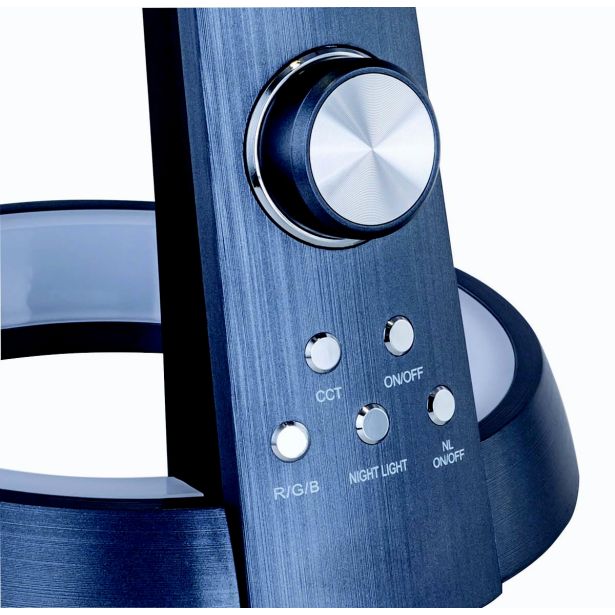 Namizna svetilka je opremljena s prilagodljivo roko, funkcijo na dotik in menjalnikom barv, kjer lahko izbirate med različnimi barvami na podstavku. Opremljena z USB vtičnico, namizno svetilko pa lahko uporabljate tudi kot nočno lučko.