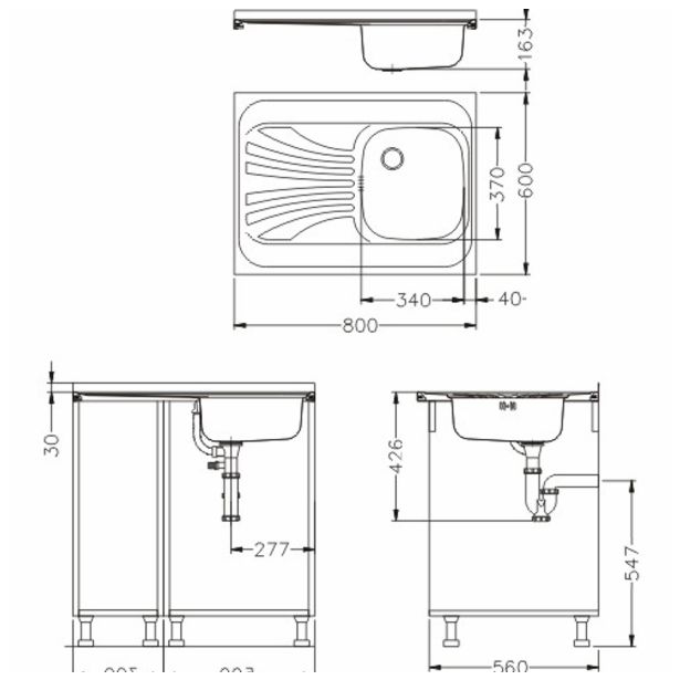 NERJAVNO POMIVALNO KORITO ALVEUS CLASSIC 30, DESNI, SATIN 800X600 MM