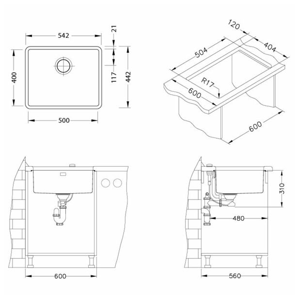 NERJAVNO POMIVALNO KORITO ALVEUS KOMBINO 50, SATIN 500X400 MM