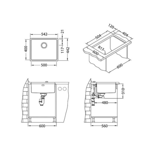 Dimenzije pomivalnika so 542 × 442 mm, dimenzije posode pa 500 × 400 × 195 mm.