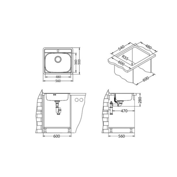 NERJAVNO POMIVALNO KORITO ALVEUS MORE 10, SATIN 560X500 MM