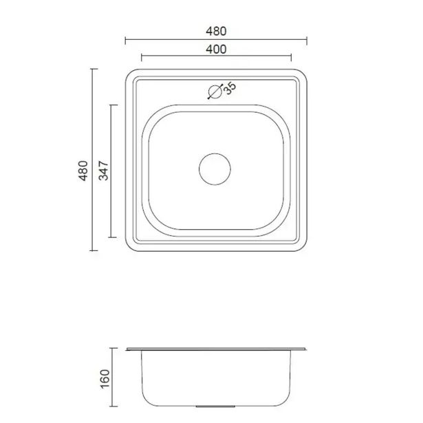 Enojno korito, dimenzij 48 x 48 x 16 cm.