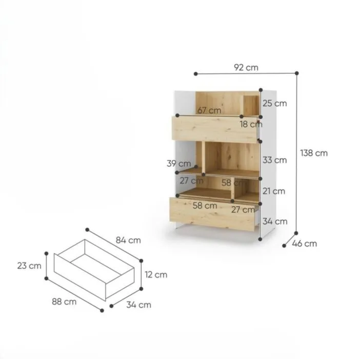 Nizki regal za posteljo v omari METULJ 92 x 138 cm je eleganten in prostoren. Prostorna notranjost in razporeditev ponuja veliko prostora za dodatke in druge potrebščine.