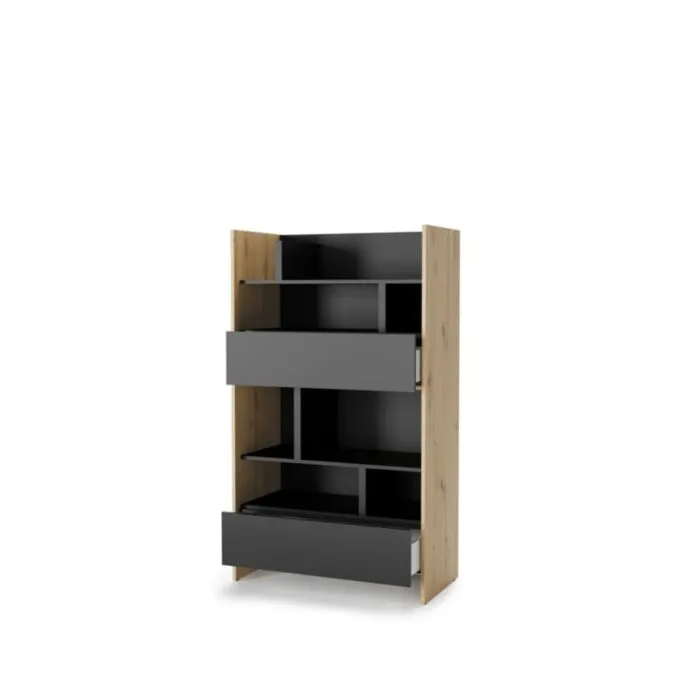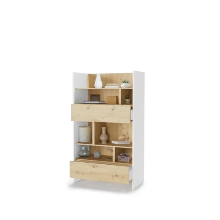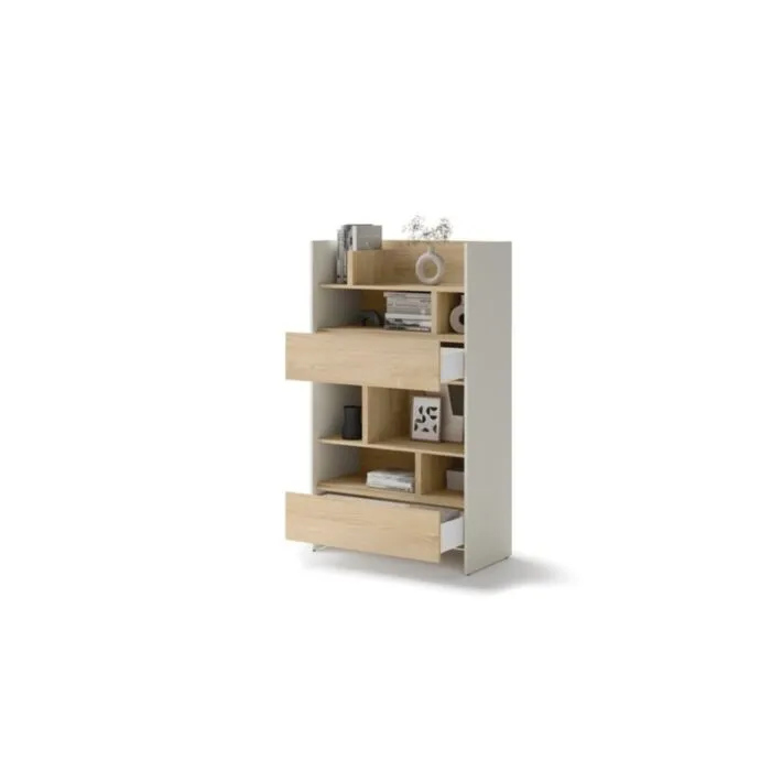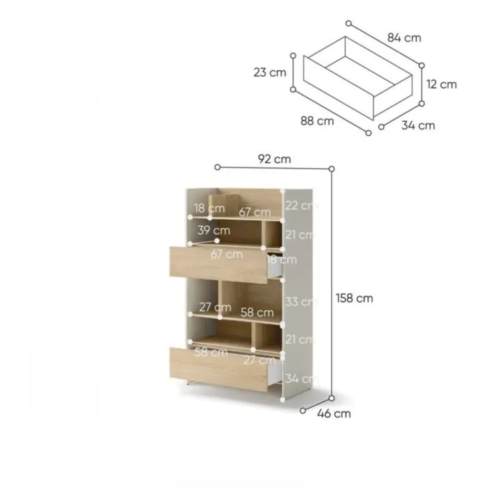 Nizki regal za posteljo v omari METULJ 92 x 158 cm je eleganten in prostoren. Prostorna notranjost in razporeditev ponuja veliko prostora za dodatke in druge potrebščine.