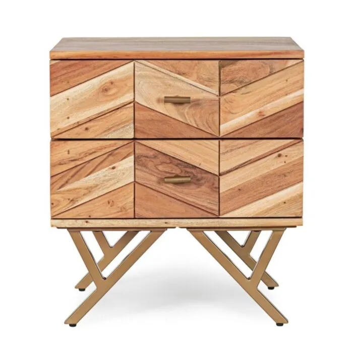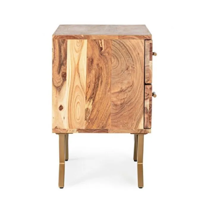 Nočna omarica 2C RAIDA je narejena iz lesa v kombinaciji z jeklenimi nogami.