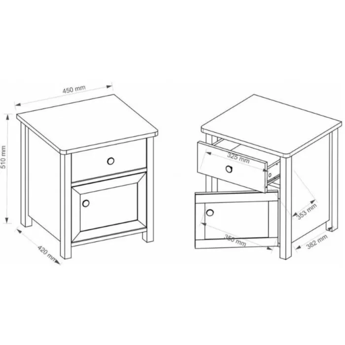 Nočna omarica LINA je omarica s predalom in vrati, zlila se bo v vsak prostor. Ponuja dovolj prostora za shranjevanje osebnih predmetov. Lahko jo kombinirate z ostalim pohištvom iz iste kolekcije.