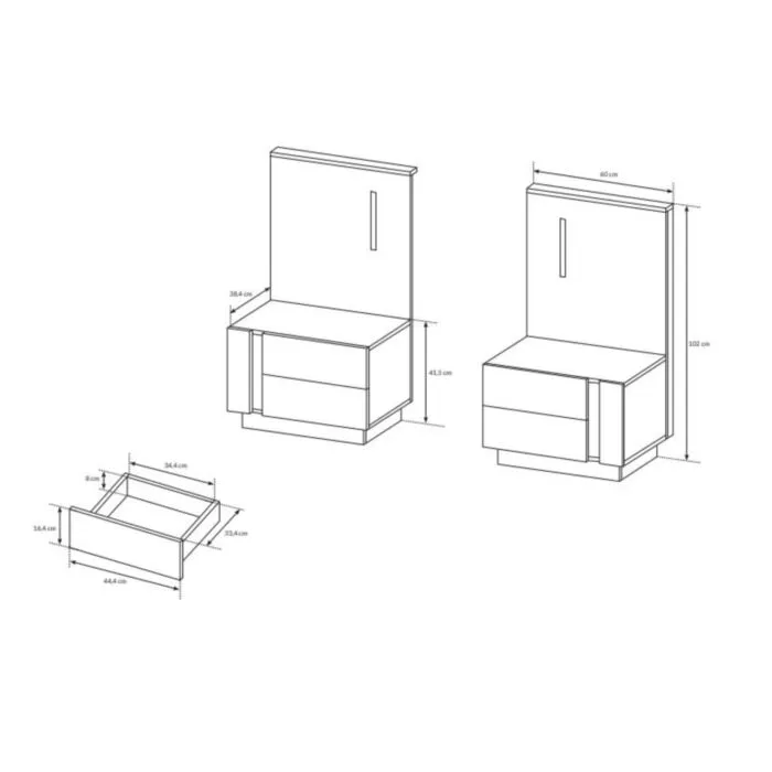 – 2 x nočna omarica D: 60 cm x V: 102 cm x G: 46 cm