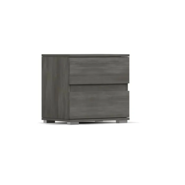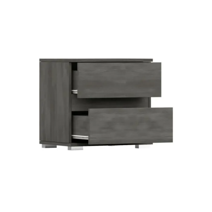 Robovi so obdelani z ABS furnirjem. Prednost laminirane plošče je ta, da je odporna na praske, poškodbe, vlago in visoke temperature. Nočna omarica ima dva prostorna predala za shranjevanje priročnih dodatkov.